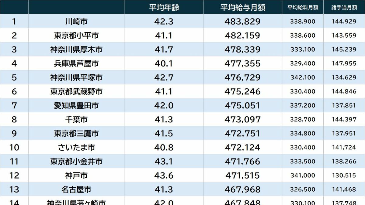 全国市区町村「公務員の平均給与」ランキング…1位は「川崎市」の48万3,829円。地域によって異なる給与体系の実態|資産形成ゴールドオンライン